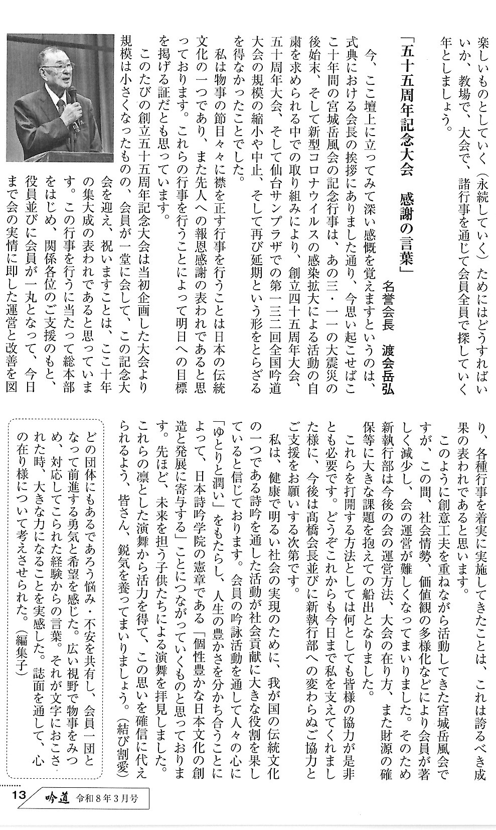 「吟道3月号」機関誌の窓(p12,p13)に宮城岳風会の会報第116号から以下の内容が掲載されました。