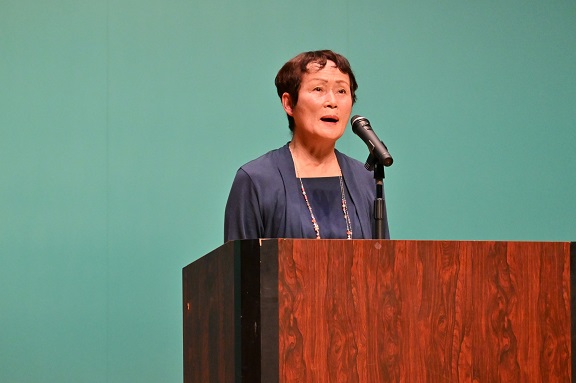 渡会会長は歓迎の辞で、「東北の認可団体がこの日に向け連携・協力して三年越しの大会開催にこぎ着けた感激と2011.3.11東日本大震災時に全国の吟友からいただいた励ましとご支援に改めて感謝すると共に、原発事故の傷は未だ癒えないものの、皆さんの励ましとご支援を糧に成し遂げた、復興の状況を見てほしい。」と述べました。